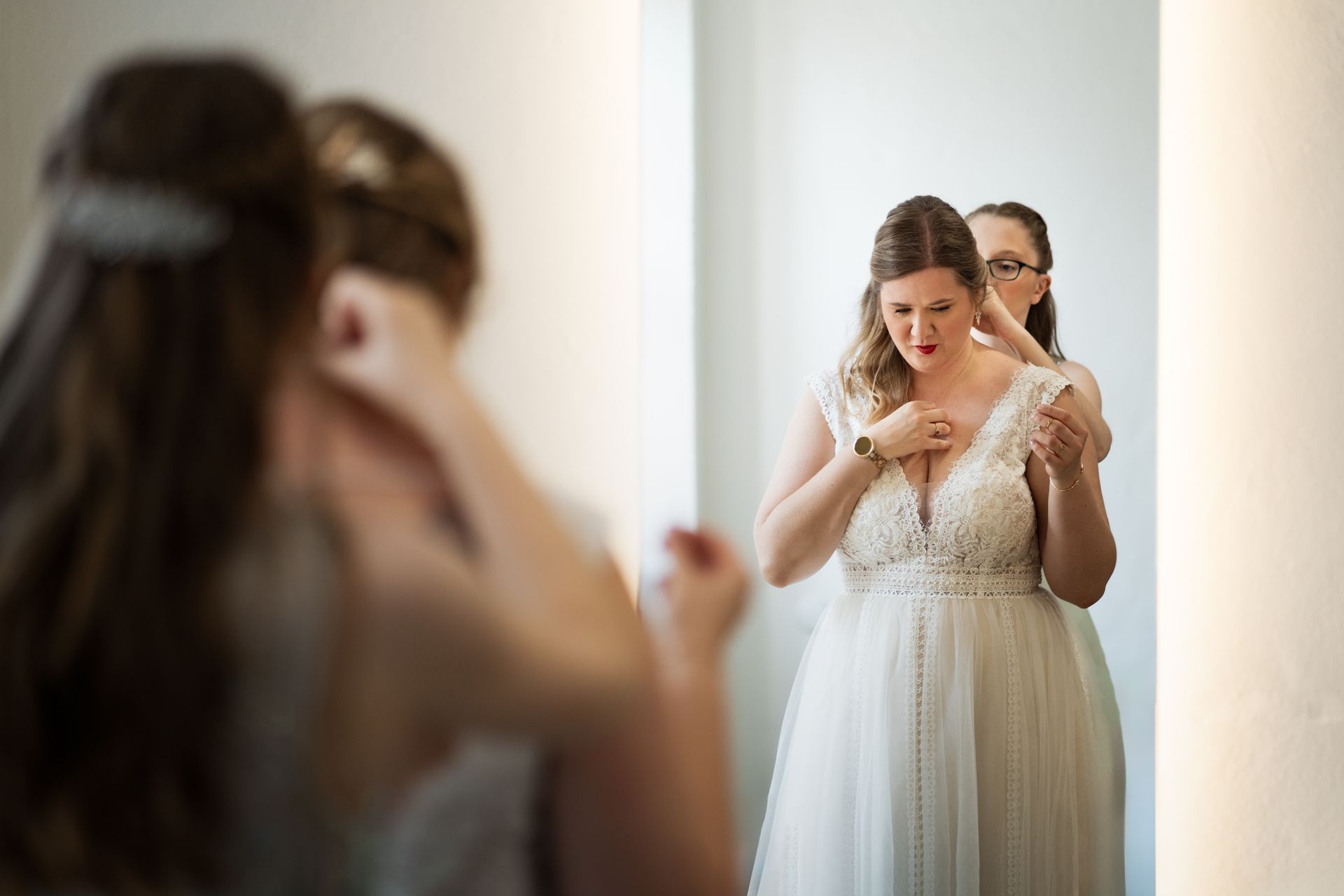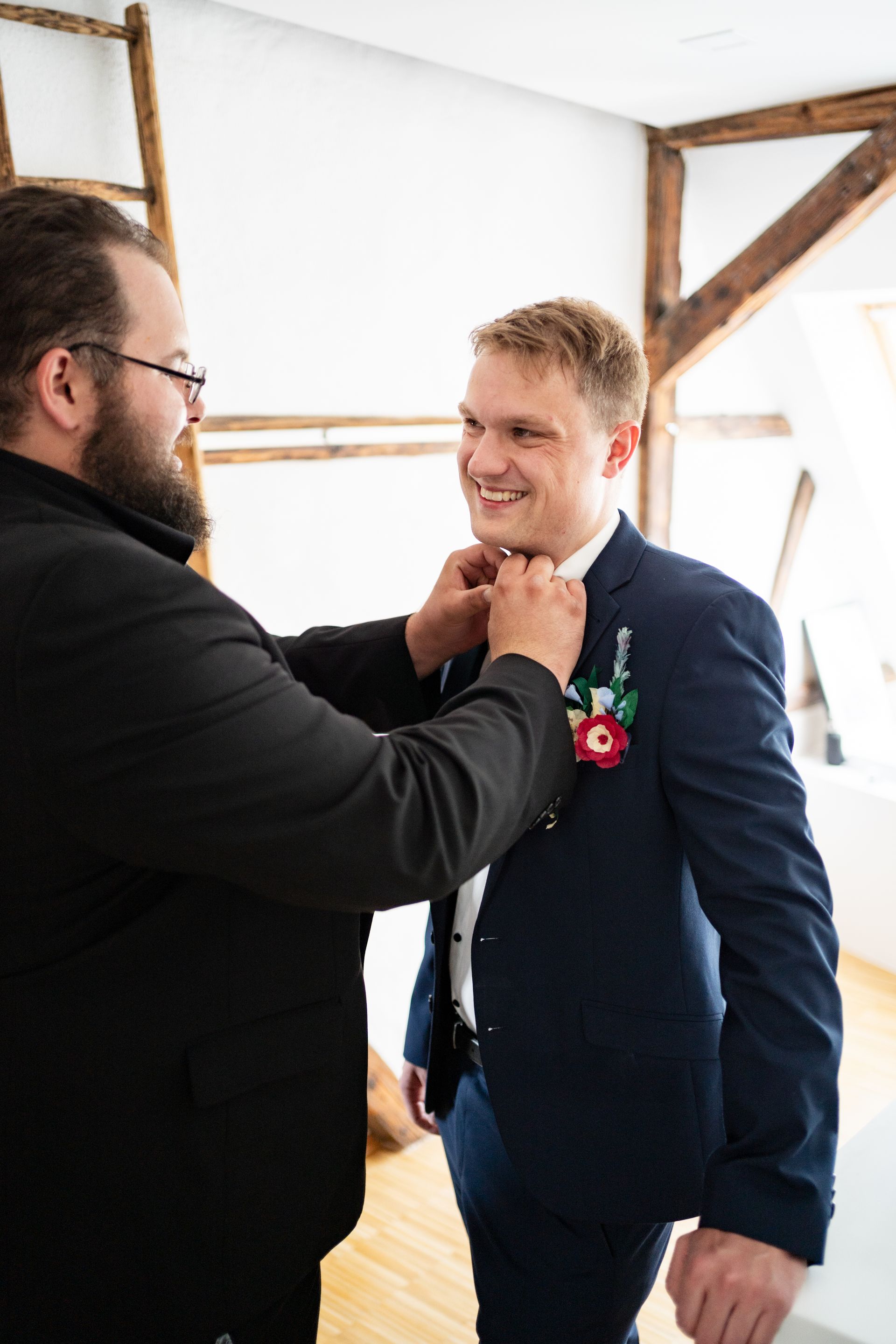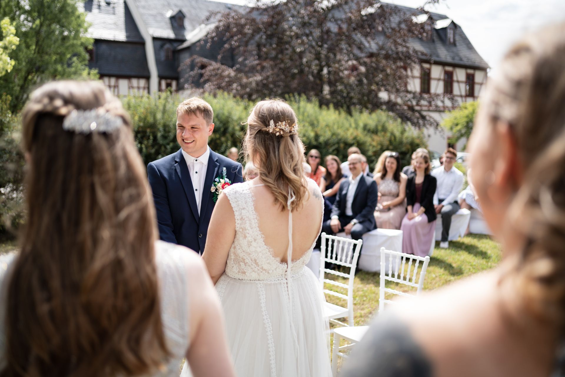 Der Tag begann mit dem Getting-Ready, bei dem die Braut vor Ort und der Bräutigam in der angrenzenden Ferienwohnung vorbereitet wurden. Ein kleiner Tipp: Planen Sie Ihre Vorbereitungen vor Ort, um mehr Zeit mit Ihren Lieben zu verbringen und weniger Ortswechsel zu haben.