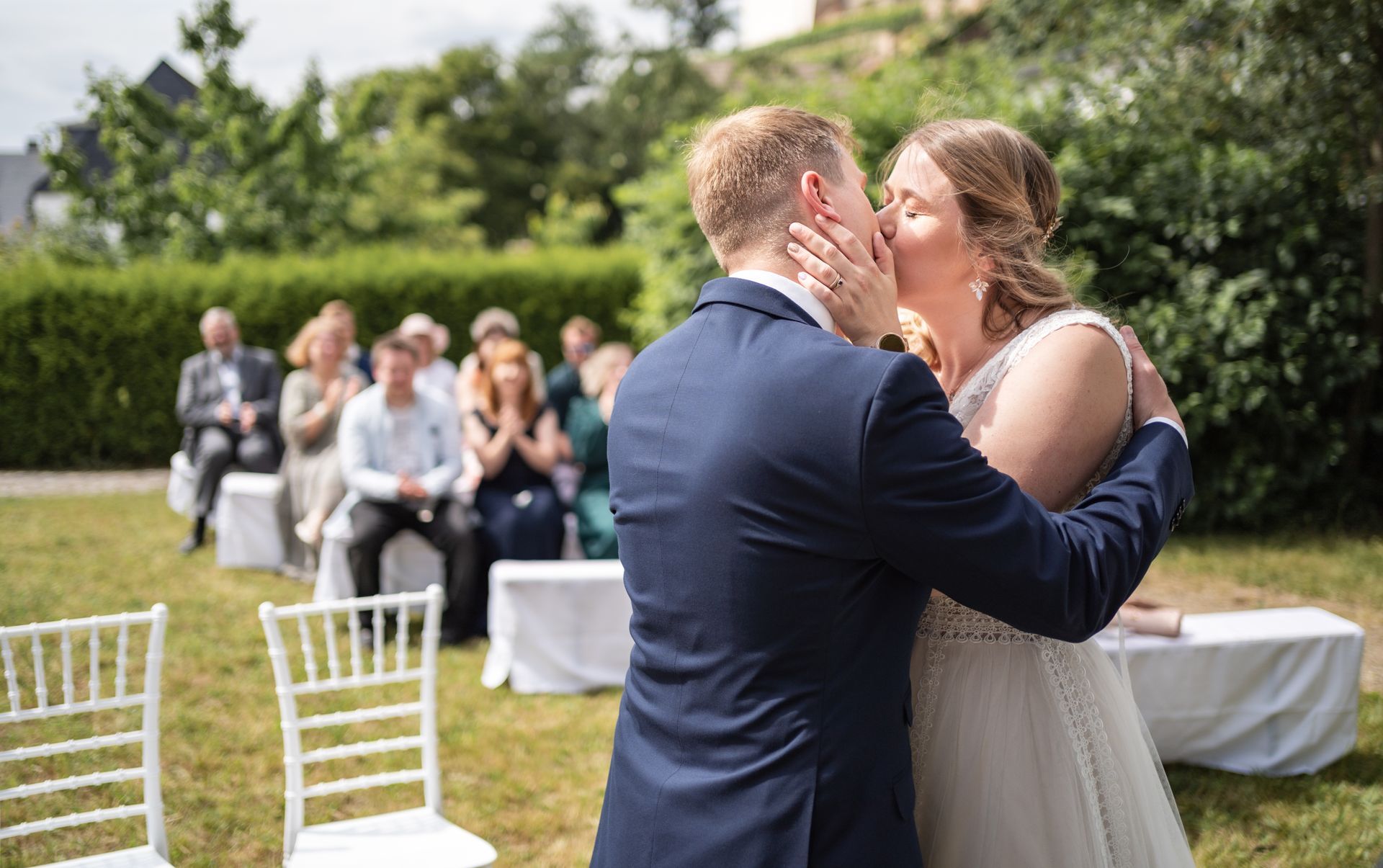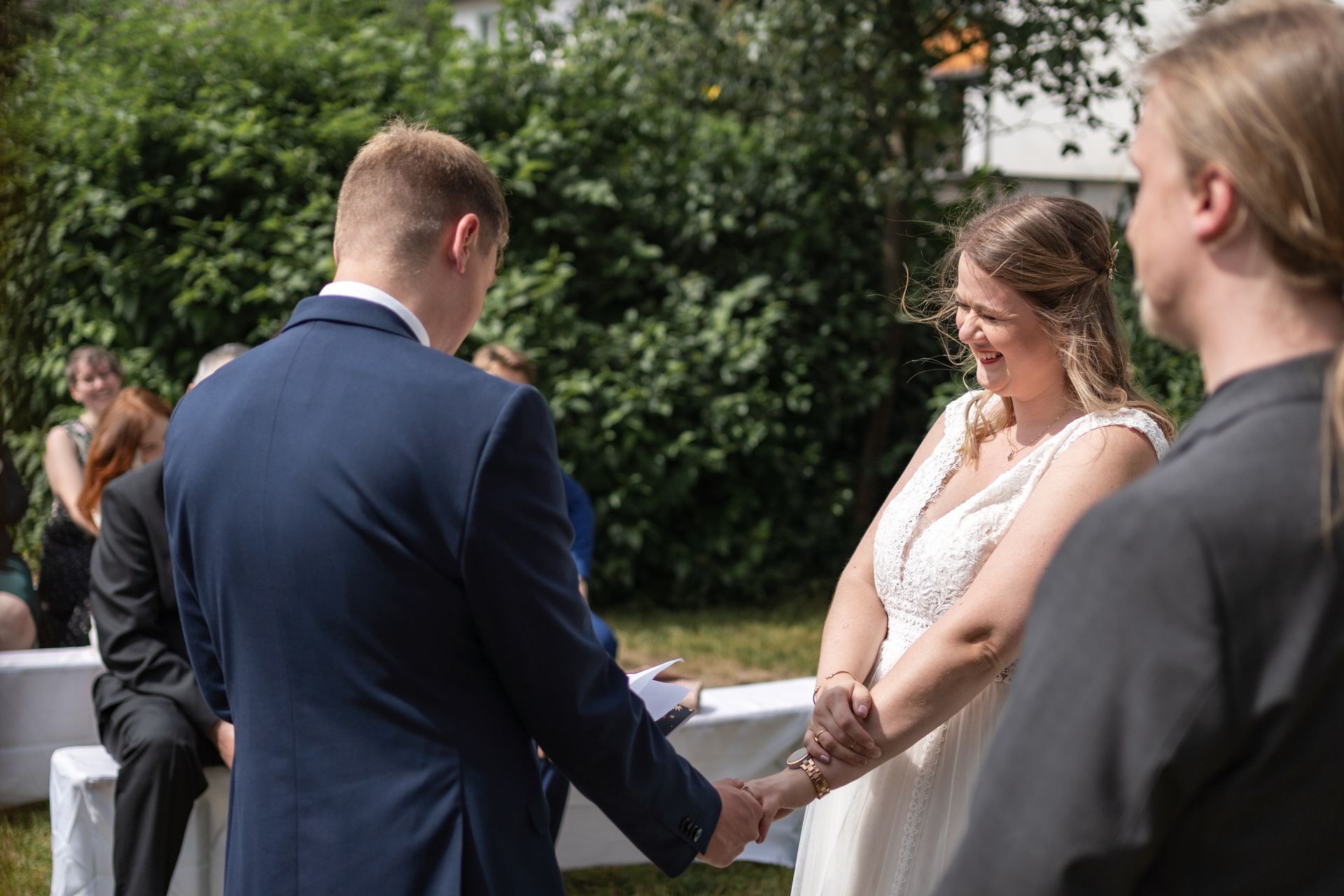 15.07.2023 Vom emotionalen First Look zu Hause bis zur herzlichen Trauung und dem entspannten Zusammensein der Familie – ich durfte Nadja und Sebastian an ihrem besonderen Tag begleiten und die schönen Momente festhalten. Das Zuhause der beiden offenbarte persönliche Details, die einem Fotografen normalerweise verborgen bleiben. Von gerahmten Kinderzeichnungen bis hin zum verschmusten Stubenkater – diese intimen Einblicke verleihen den Bildern eine besondere Note. Wenn auch eure Feier in einem solch privaten Rahmen beginnt oder stattfindet, zögert nicht, nach einem Fotografen Ausschau zu halten. Die Erinnerungen, die dabei entstehen, könnten sogar noch wertvoller werden als die in einem festlichen Saal gefeierten. Die kirchliche Trauung fand in der malerischen Kirche Mittweida statt, gefolgt von erfrischenden Getränken im Außenbereich, um die Gäste bei den hohen Temperaturen zu erfrischen. Manchmal sind es die einfachen Lösungen, die alle begeistern und völlig ausreichen können.