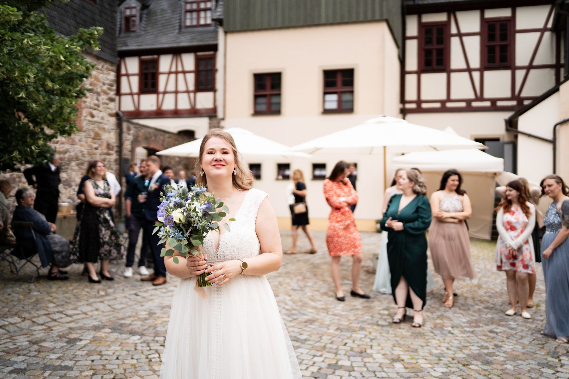 Jeanine und Daniel hatten mich für etwa 8 Stunden gebucht, was mir die Gelegenheit gab, einen Großteil des Tages fotografisch zu begleiten. Dabei wurde bewusst auf Klischees verzichtet, außer beim Brautstraußwurf. Hier ist mein Tipp: Gestalten Sie Ihren Tag nach Ihren Wünschen. Es ist Ihr Moment, Ihre Liebe. Ob Sie das volle Klischeeprogramm möchten oder lieber entspannt Zeit mit Familie und Freunden verbringen möchten, ohne großen Trubel – beides ist absolut in Ordnung.