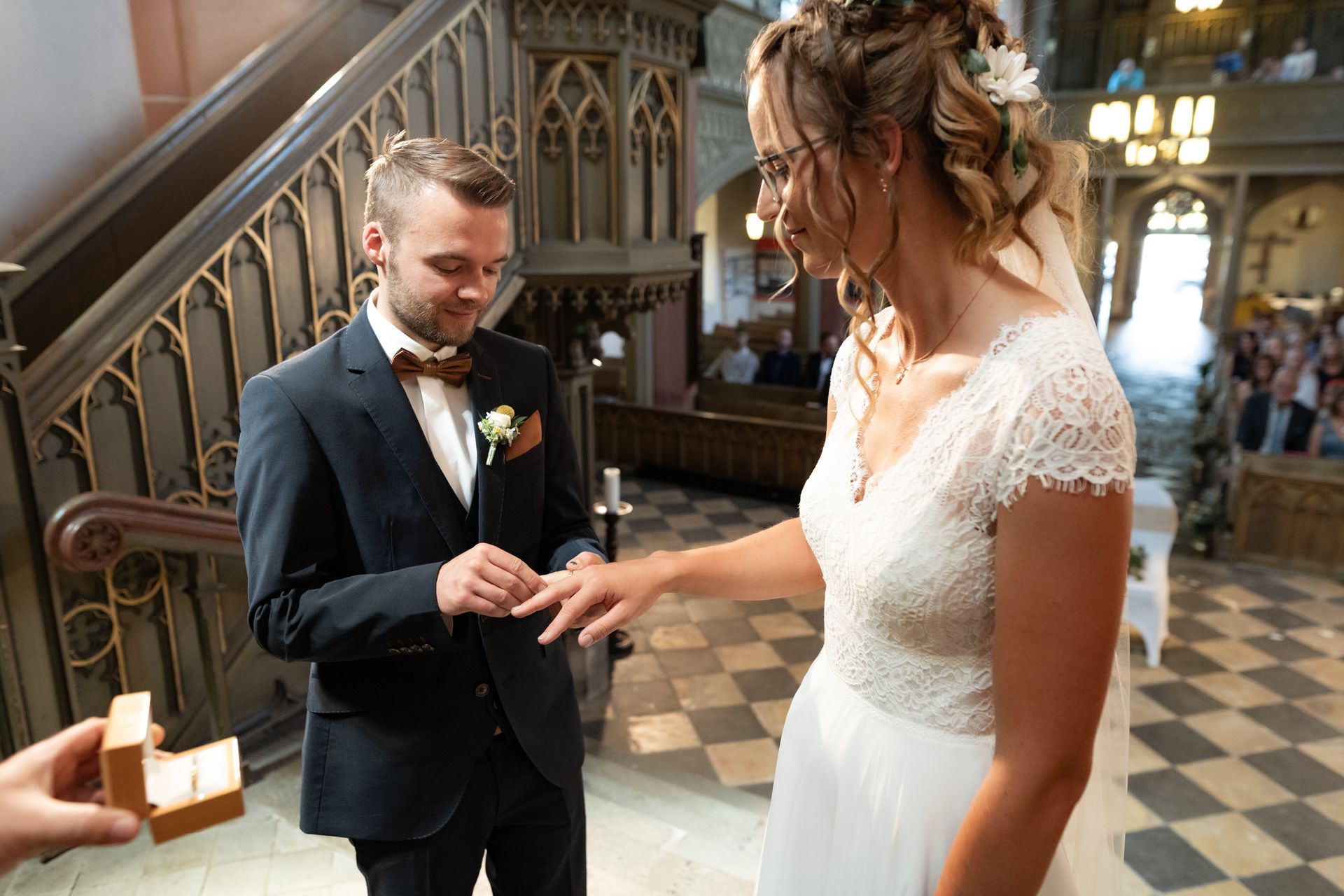 Die charmante Kirche am Rande von Zwickau bildete eine wunderschöne Kulisse für die feierliche Trauung, die ich bildlich einfangen durfte. Anschließend begaben wir uns zur nahegelegenen Feierlocation, wo der Rest des Tages für das Brautpaar und alle Gäste stattfand. Für romantische Paar-Bilder setzten wir uns in den Oldtimer des Bräutigams und fuhren in ein nahegelegenes Waldstück. Die individuellen Aufnahmen erforderten etwa eine Stunde (inklusive Fahrzeit zur Location). Wenn ihr also besondere Aufnahmen außerhalb der Hauptlocation wünscht, gebt mir gerne im Voraus Bescheid. Plant jedoch ein angemessenes Zeitfenster ein, um sicherzustellen, dass eure Gäste euch in dieser Zeit nicht vermissen.